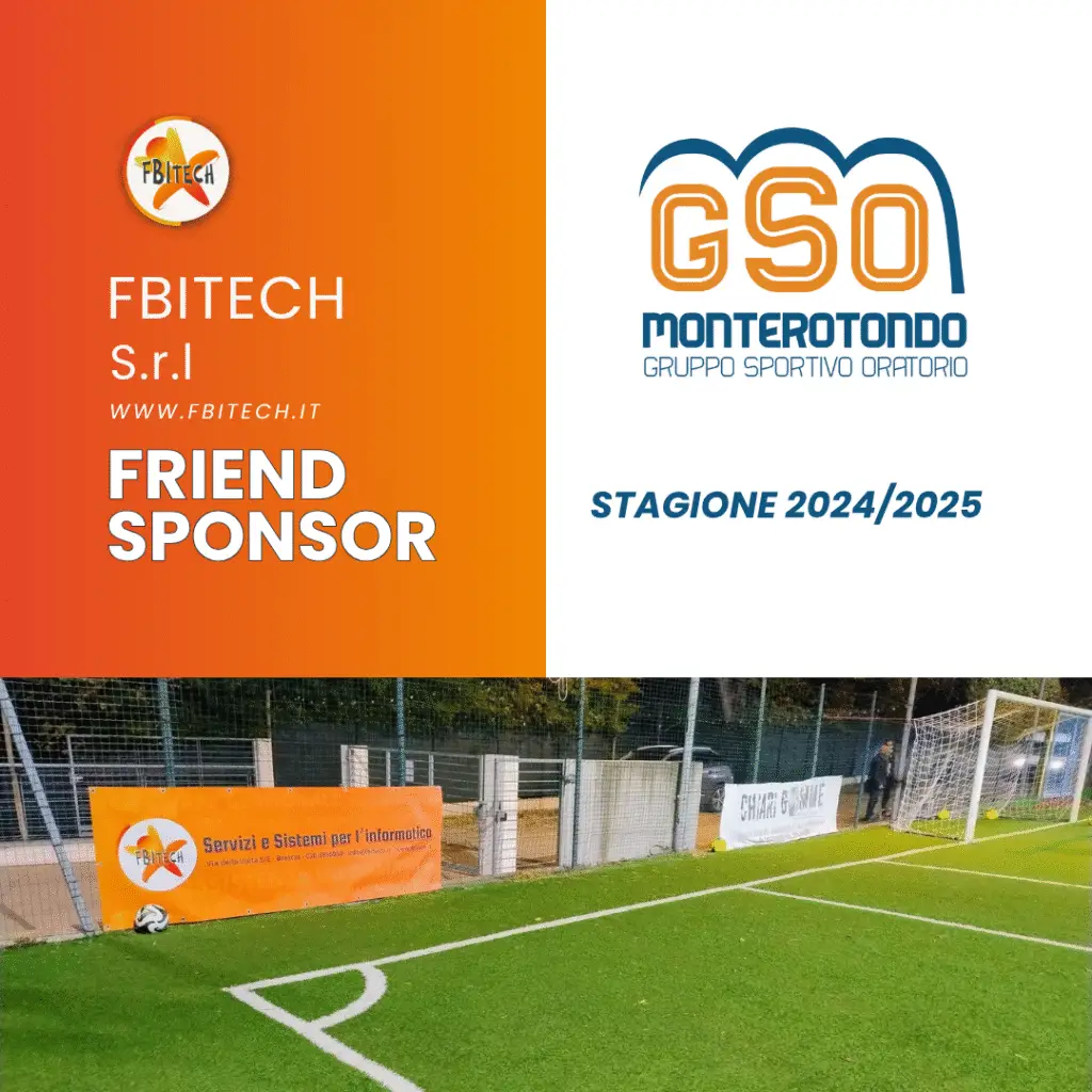 Siamo sponsor di GSO Monterotondo, una storica associazione sportiva dilettantistica (ASD) che promuove il calcio tra i giovani e valorizza i principi di sportività, impegno e crescita personale.